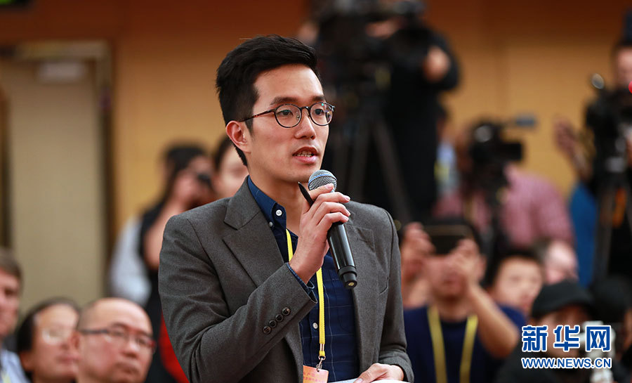 10月23日,十九大新聞中心舉辦記者招待會,邀請中央財經(jīng)領(lǐng)導小組辦公室副主任楊偉民,環(huán)境保護部黨組書記、部長李干杰介紹踐行綠色發(fā)展理念,建設(shè)美麗中國有關(guān)情況,并回答記者提問。圖為香港商業(yè)電臺記者提問。新華網(wǎng) 郝廣鵬攝