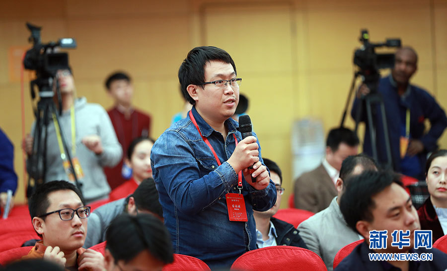 10月23日,十九大新聞中心舉辦集體采訪活動(dòng),主題為“打好生態(tài)環(huán)保攻堅(jiān)戰(zhàn)”。圖為光明日?qǐng)?bào)記者提問(wèn)。新華網(wǎng) 郝廣鵬攝