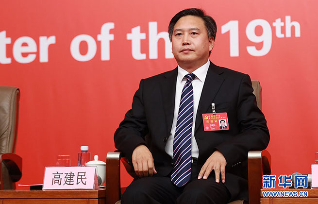 10月23日,十九大新聞中心舉辦集體采訪活動(dòng),主題為“打好生態(tài)環(huán)保攻堅(jiān)戰(zhàn)”。圖為河北省環(huán)保廳黨組書記、廳長高建民。新華網(wǎng) 郝廣鵬攝