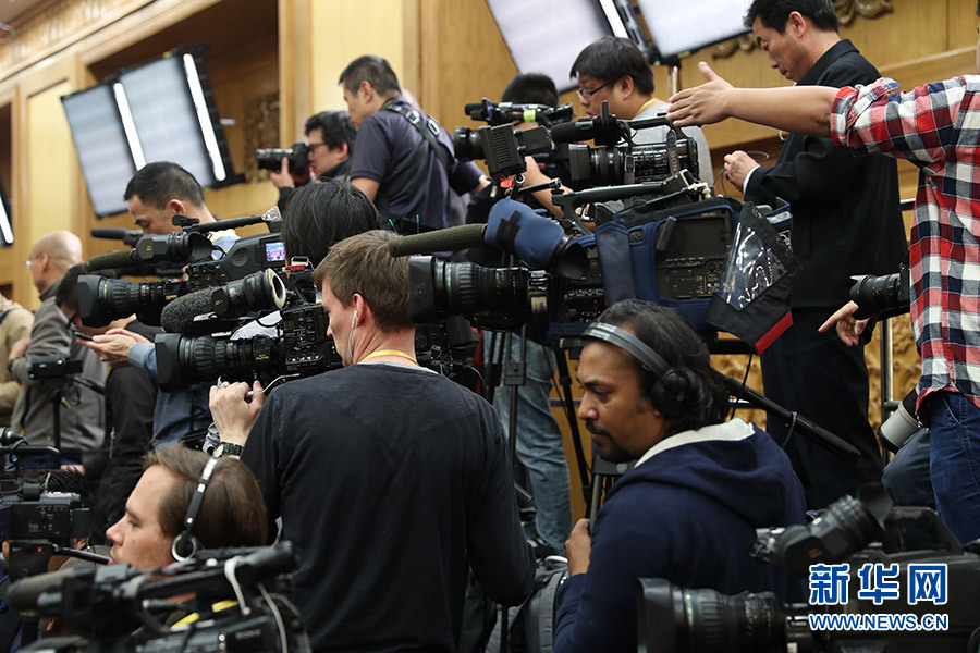 ??? 10月25日,黨的十九屆中央委員會(huì)第一次全體會(huì)議新選出的中央政治局常委將同中外記者見面。圖為中外記者在見面會(huì)現(xiàn)場進(jìn)行準(zhǔn)備工作。新華網(wǎng) 翟子赫 攝