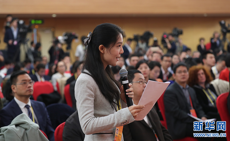 ? 10月26日上午10:00,中國共產(chǎn)黨第十九次全國代表大會(huì)新聞發(fā)言人在梅地亞賓館二層新聞發(fā)布廳召開專題新聞發(fā)布會(huì),請有關(guān)方面負(fù)責(zé)人解讀十九大報(bào)告,并回答記者關(guān)心的問題。圖為中央人民廣播電臺(tái)記者提問。新華網(wǎng) 王成云 攝