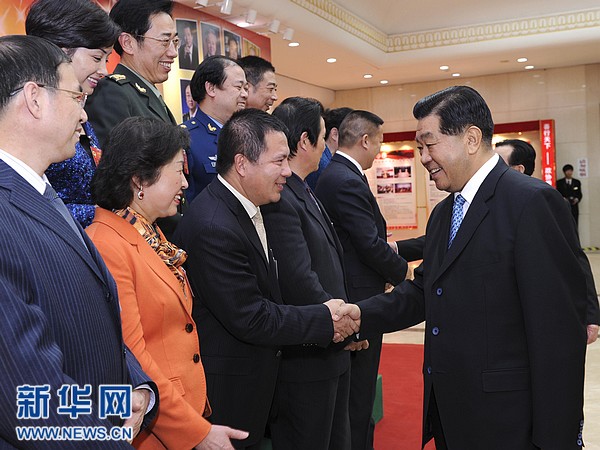 ??? 11月19日,全國政協(xié)主席賈慶林在北京全國政協(xié)禮堂參觀“善行天下·政協(xié)委員慈善公益事跡展”。這是賈慶林同從事慈善事業(yè)的政協(xié)委員代表親切握手。新華社記者 饒愛民 攝