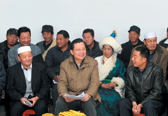 11月22日,省委書記、省人大常委會主任強衛(wèi)深入貴德縣河陰鎮(zhèn)大史家村,面對面向基層黨員和農(nóng)牧民群眾宣講黨的十八大精神。(記者 劉端強 攝)
