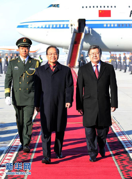 溫家寶抵達(dá)比什凱克出席上海合作組織成員國總理第十一次會(huì)議并對(duì)吉爾吉斯斯坦進(jìn)行正式訪問