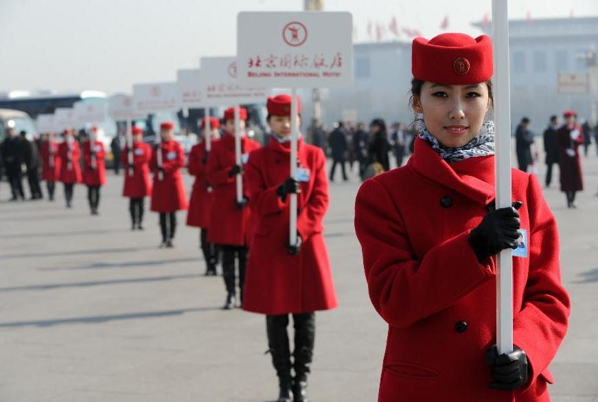 [兩會(huì)花絮]會(huì)場外的紅衣靚影