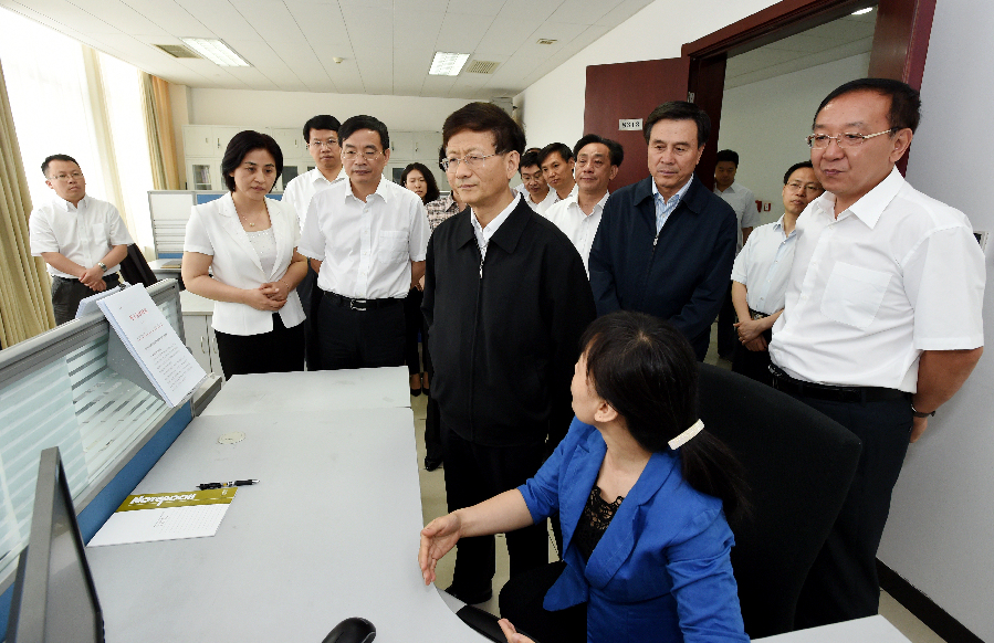 5月27日,中共中央政治局委員、中央政法委書(shū)記孟建柱在國(guó)家信訪局調(diào)研。圖為孟建柱查看國(guó)家信訪信息系統(tǒng)運(yùn)行情況。
