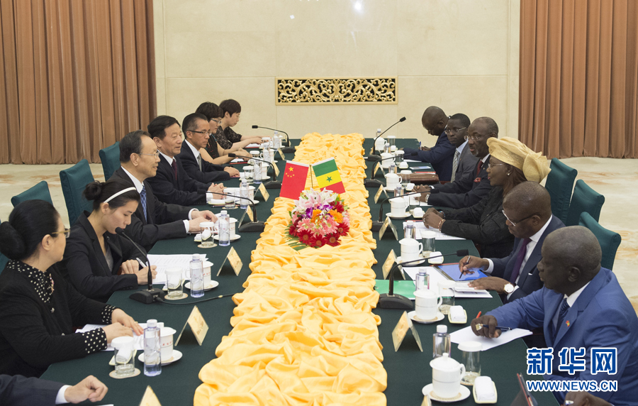 ??? 6月1日,中共中央書記處書記、全國政協(xié)副主席、中國經(jīng)濟社會理事會主席杜青林在北京與塞內(nèi)加爾經(jīng)濟、社會和環(huán)境理事會主席塔勒舉行會談。新華社記者王曄攝