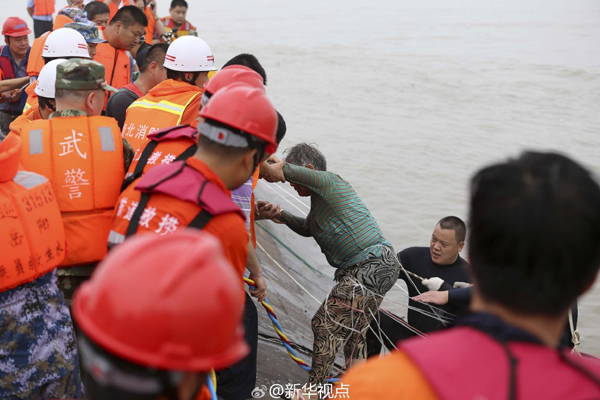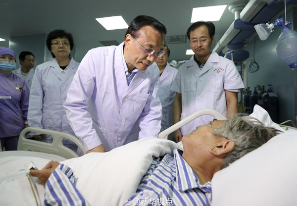 新華網北京6月2日電 ?據新華社“新華視點”微博報道,“我看著你被救上來的!”2日下午,李克強來到監(jiān)利縣人民醫(yī)院,看望中午獲救的朱紅美。這位65歲的老人被潛水員救起時,總理正在沉船附近水域的船上現(xiàn)場指揮。朱紅美講起自己逃生經歷,總理說:“不要多說話,先把身體養(yǎng)好。政府會處理好你們善后事宜的。”
