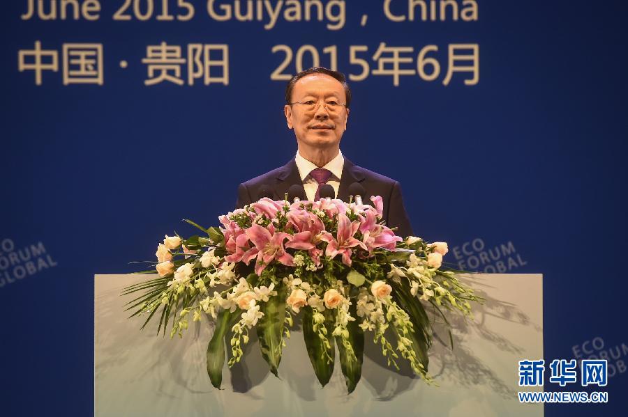 ??? 6月27日,中共中央書記處書記、全國政協(xié)副主席、中國經(jīng)濟(jì)社會(huì)理事會(huì)主席杜青林出席生態(tài)文明貴陽國際論壇2015年年會(huì)開幕式并講話。新華社記者 歐東衢 攝