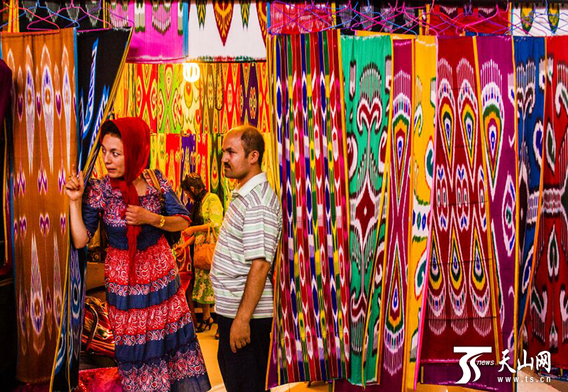 商店里掛著艷麗的艾德萊斯綢。 新華社記者 沈橋 攝