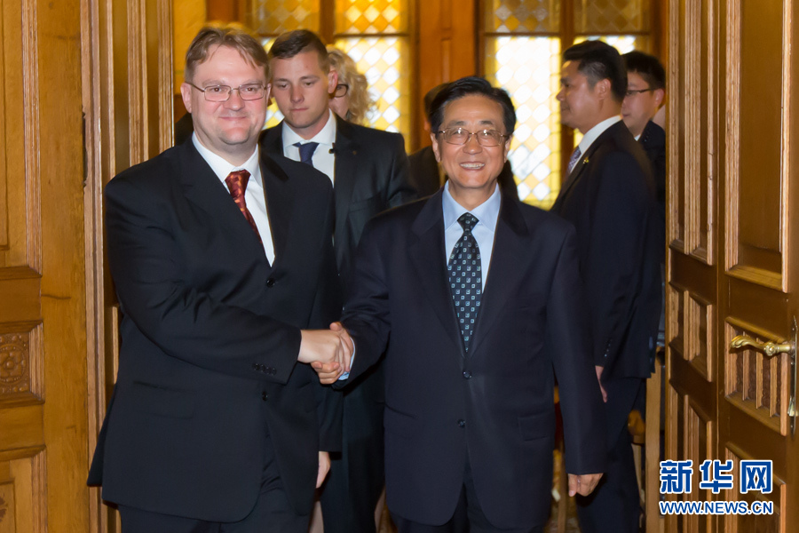 ??? 9月11日,中共中央書記處書記、中央紀委副書記趙洪祝(右)在布達佩斯會見匈牙利司法部國務(wù)秘書雷帕希。應(yīng)匈牙利執(zhí)政黨青民盟邀請,中共中央書記處書記、中央紀委副書記趙洪祝率中共代表團于9月10日至11日訪問匈牙利。新華社發(fā)(弗爾季·奧蒂洛攝)