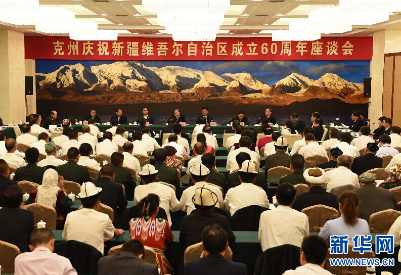俞正聲還接見了克州有關負責同志、各界人士代表、援疆干部代表,同大家合影留念,并出席了克州慶祝新疆維吾爾自治區(qū)成立60周年座談會。