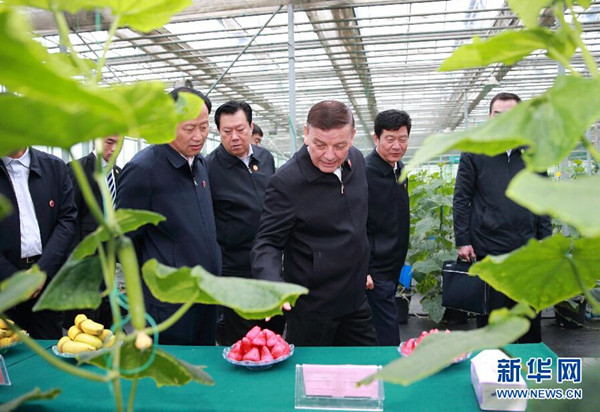 ????9月28日,全國人大常委會副委員長、中央代表團副團長艾力更·依明巴海率中央代表團三分團在昌吉回族自治州、烏魯木齊市看望慰問當(dāng)?shù)馗髯甯刹咳罕?。這是艾力更·依明巴海在昌吉國家農(nóng)業(yè)科技園區(qū)新疆農(nóng)業(yè)博覽園考察。新華社記者丁海濤攝