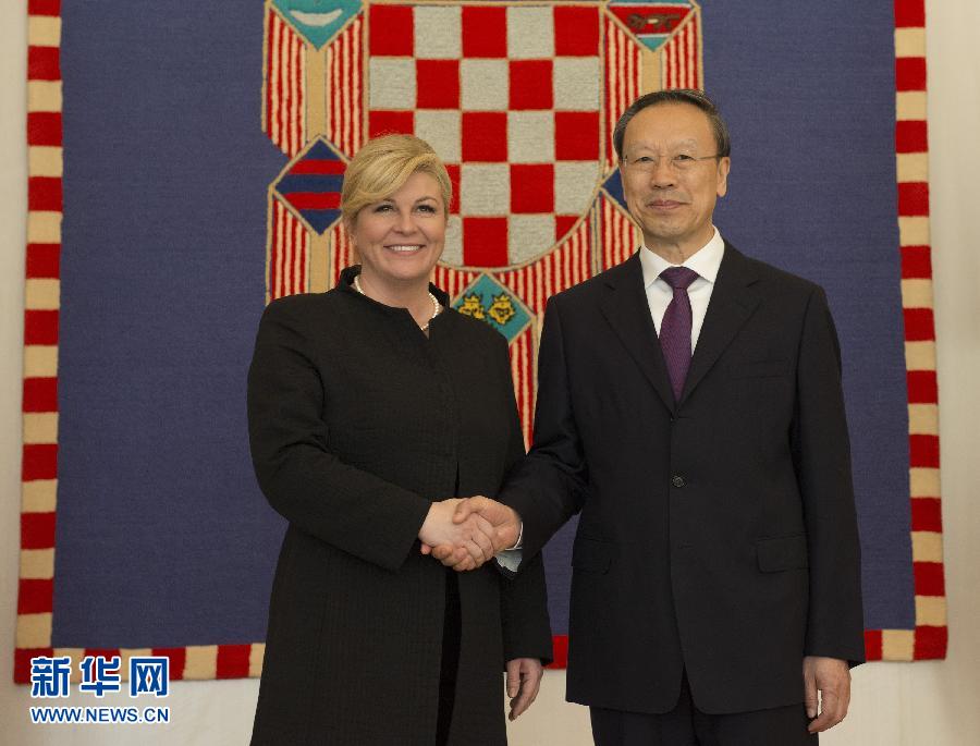 ??? 11月13日,在位于克羅地亞薩格勒布的總統(tǒng)府,克羅地亞總統(tǒng)基塔羅維奇(左)和中共中央書記處書記、全國(guó)政協(xié)副主席杜青林握手。正在克羅地亞訪問(wèn)的中共中央書記處書記、全國(guó)政協(xié)副主席杜青林13日在薩格勒布分別會(huì)見了克羅地亞總統(tǒng)基塔羅維奇和議長(zhǎng)萊科。新華社發(fā)(米紹·利沙寧攝)