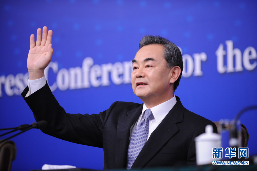 ?? 十二屆全國人大三次會議新聞中心于3月8日(星期日)10時(shí)在梅地亞中心多功能廳舉行記者會,邀請外交部部長王毅就中國的外交政策和對外關(guān)系相關(guān)問題回答中外記者提問。圖為外交部部長王毅向記者揮手致意。新華網(wǎng)/中國政府網(wǎng) 翟子赫 攝