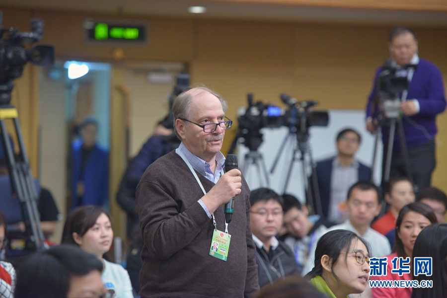 ???? 十二屆全國(guó)人大三次會(huì)議新聞中心于3月11日10時(shí)45分舉行記者會(huì),邀請(qǐng)科技部部長(zhǎng)萬(wàn)鋼就科技改革與發(fā)展回答中外記者提問。圖為德國(guó)世界報(bào)記者提問。新華網(wǎng)/中國(guó)政府網(wǎng) 郭小天 攝