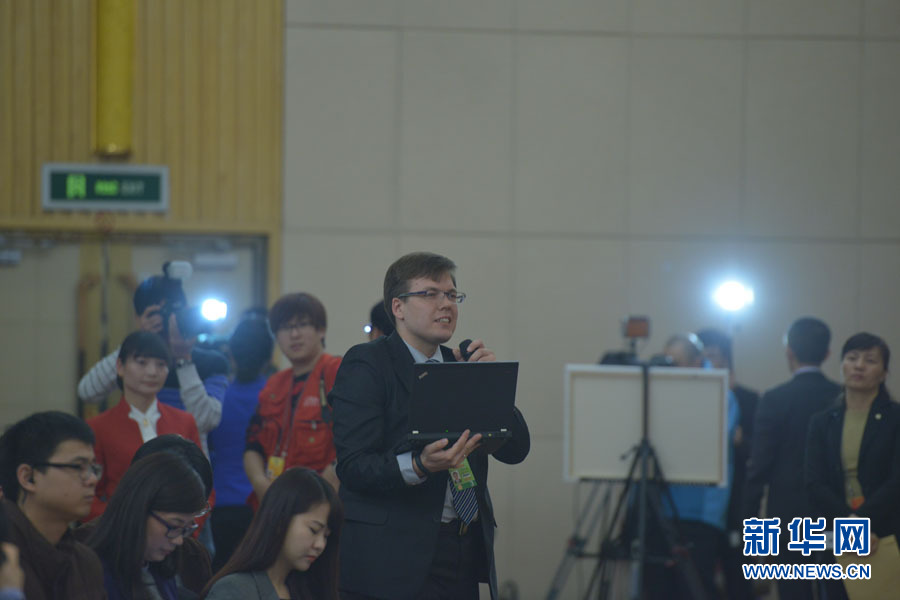 ????十二屆全國人大三次會議新聞中心于3月12日在梅地亞中心多功能廳舉行記者會,邀請中國人民銀行行長周小川,中國人民銀行副行長、國家外匯管理局局長易綱,中國人民銀行副行長潘功勝,絲路基金有限責任公司董事長金琦就金融改革與發(fā)展回答中外記者提問。圖為塔斯社記者提問。新華網/中國政府網 郭小天攝