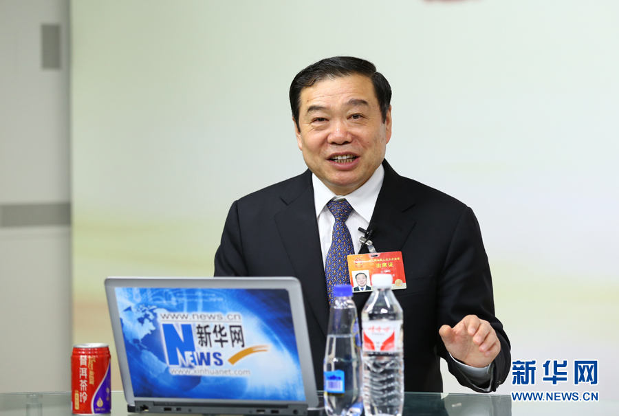 ??? 2015年3月13日,全國人大代表、內(nèi)蒙古森工集團董事長張學(xué)勤做客新華會客廳。圖為張學(xué)勤解答主持人問題。新華網(wǎng) 李江 攝?