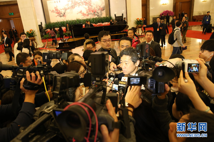 3月13日,全國政協(xié)十二屆三次會議在北京人民大會堂舉行閉幕會。圖為政協(xié)委員李稻葵接受記者采訪。新華網(wǎng)/中國政府網(wǎng) 周柏豫 攝