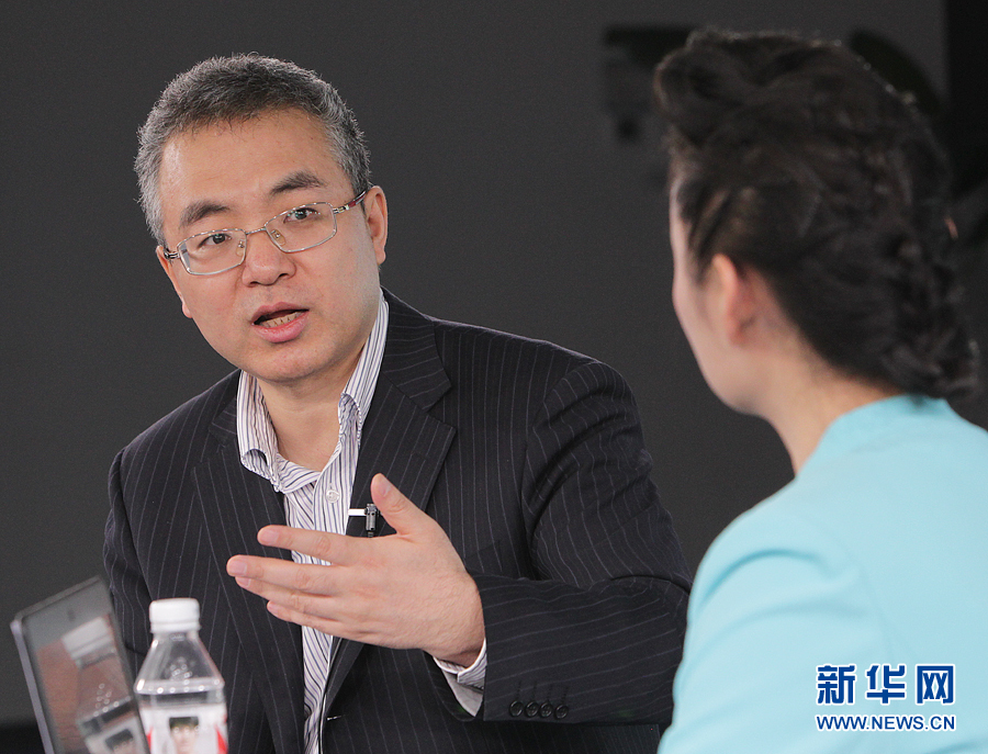 2015年3月13日,中國(guó)人民銀行金融研究所所長(zhǎng)姚余棟做客新華網(wǎng)2015全國(guó)兩會(huì)特別訪談。圖為姚余棟解答主持人的問(wèn)題。 新華網(wǎng) 郭 研 攝