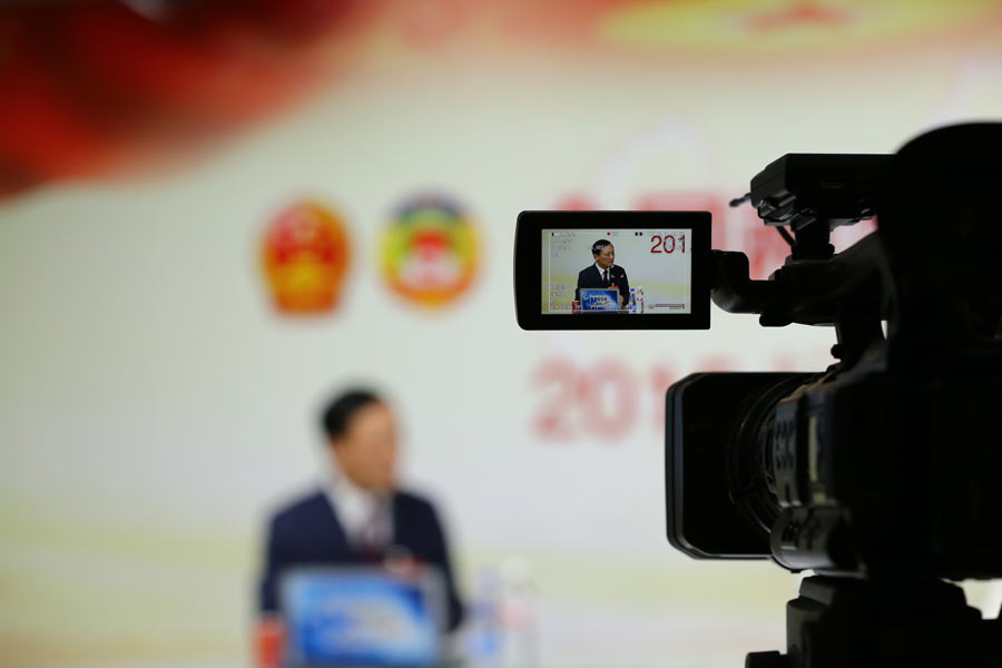 2015年3月13日,全國(guó)人大代表,北京大學(xué)第三醫(yī)院骨科主任及脊柱外科研究所所長(zhǎng)劉忠軍做客新華會(huì)客廳。圖為訪談現(xiàn)場(chǎng)。新華網(wǎng) 李江 攝