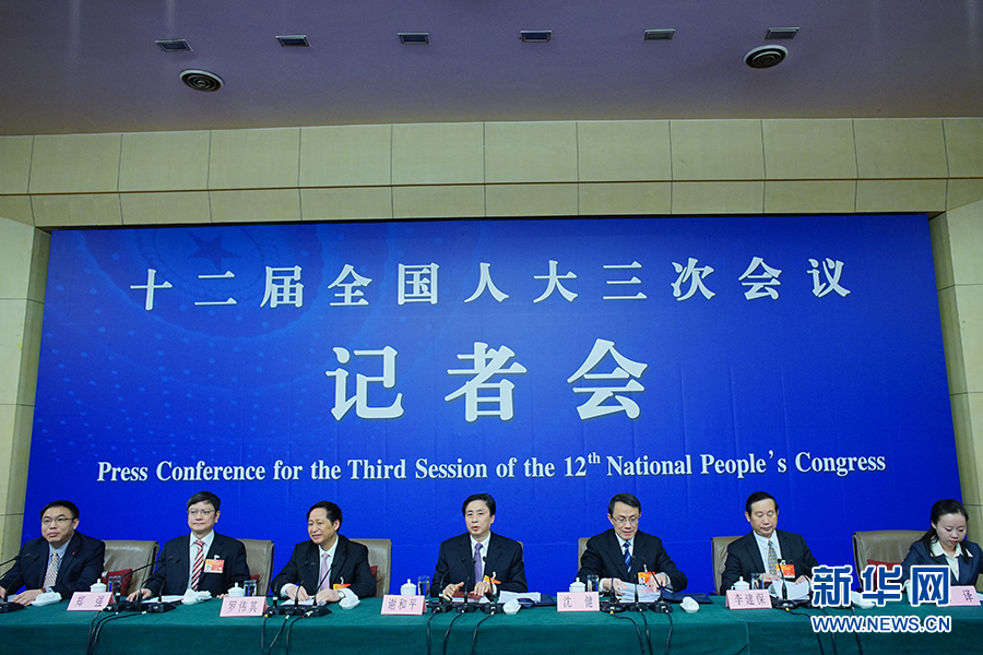 ????3月13日上午10時(shí),十二屆全國人大三次會(huì)議新聞中心邀請(qǐng)四川大學(xué)校長謝和平、江蘇省教育廳廳長沈健、廣東省教育廳廳長羅偉其、海南大學(xué)校長李建保、貴州大學(xué)校長鄭強(qiáng)就完善高等教育治理結(jié)構(gòu)的相關(guān)問題回答中外記者提問。圖為出席記者會(huì)的嘉賓。新華網(wǎng)/中國政府網(wǎng) 郭小天 攝