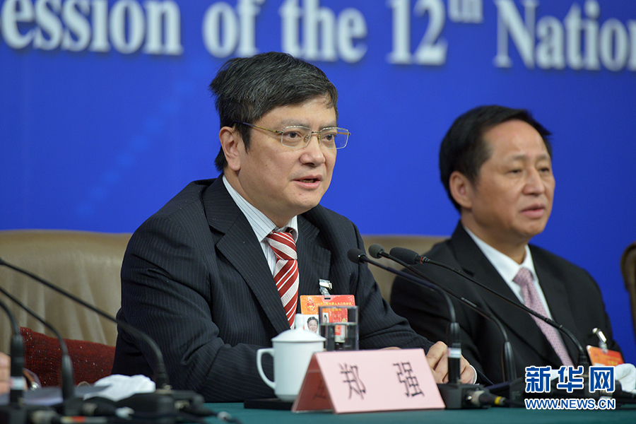 ????3月13日上午10時(shí),十二屆全國人大三次會(huì)議新聞中心邀請四川大學(xué)校長謝和平、江蘇省教育廳廳長沈健、廣東省教育廳廳長羅偉其、海南大學(xué)校長李建保、貴州大學(xué)校長鄭強(qiáng)就完善高等教育治理結(jié)構(gòu)的相關(guān)問題回答中外記者提問。圖為貴州大學(xué)校長鄭強(qiáng)答記者問。新華網(wǎng)/中國政府網(wǎng) 郭小天 攝