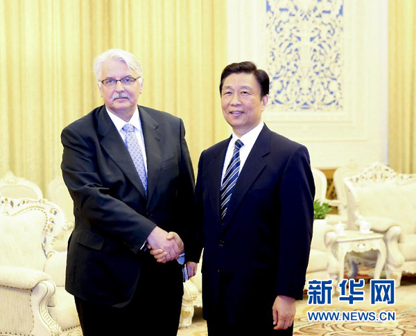 4月26日,國家副主席李源潮在北京會見波蘭外長瓦什奇科夫斯基。 新華社記者 丁林 攝