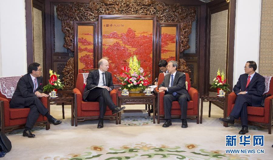 ??? 6月7日,中國國務(wù)院副總理馬凱在北京中南海紫光閣會見國際證監(jiān)會組織理事會主席、香港證監(jiān)會行政總裁歐達(dá)禮和香港證監(jiān)會主席唐家成。新華社記者 謝環(huán)馳 攝