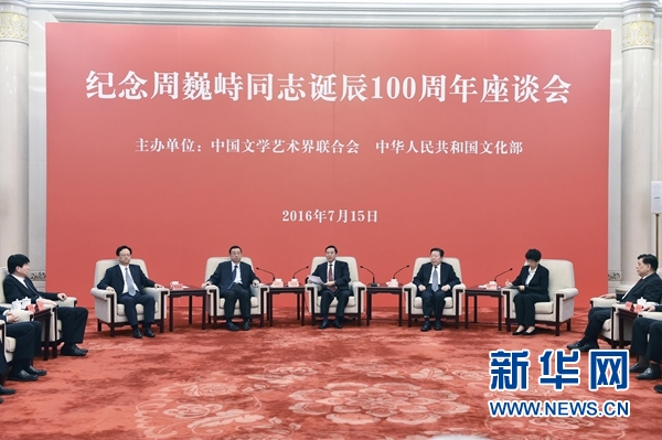 新華社北京7月15日電 紀(jì)念周巍峙同志誕辰100周年座談會(huì)7月15日在京舉行。中共中央政治局委員、中央書記處書記、中宣部部長劉奇葆出席座談會(huì)并講話。中國文聯(lián)主席孫家正出席。