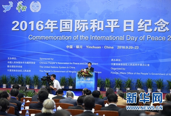9月21日,2016年國際和平日紀(jì)念活動在銀川開幕,國家副主席李源潮出席并致辭。 新華社記者 王鵬 攝