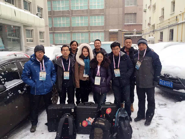 圖為2016年的風(fēng)雪中,記者與同事們一道參與在烏魯木齊舉辦的“第十三屆全國(guó)冬季運(yùn)動(dòng)會(huì)”報(bào)道。
