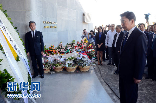 ??? 11月29日,在古巴首都哈瓦那,中共中央總書記、國家主席習(xí)近平特使國家副主席李源潮在何塞·馬蒂紀念館代習(xí)近平主席向菲德爾·卡斯特羅敬獻花圈。新華社發(fā)(華金·埃爾南德斯攝)