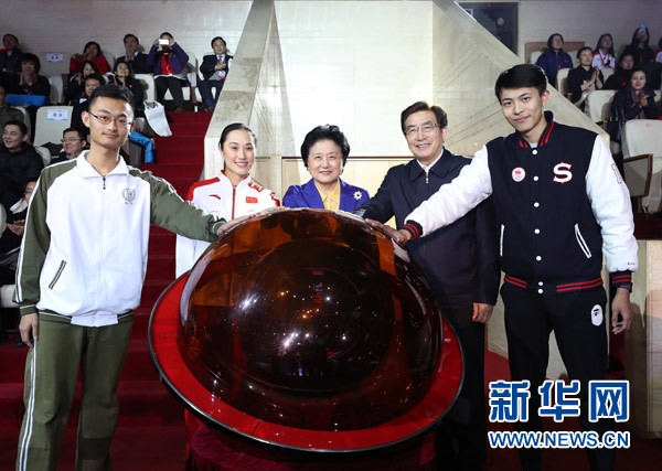 12月16日,國務(wù)院副總理劉延?xùn)|,北京市委書記、北京冬奧組委主席郭金龍?jiān)诒本┦锥俭w育館出席第三屆全國大眾冰雪季啟動(dòng)儀式。 新華社記者王曄 攝
