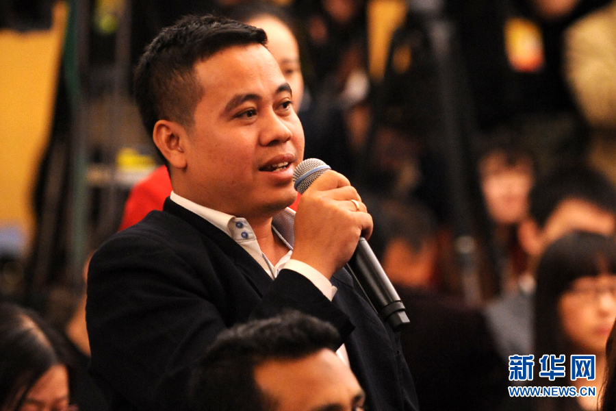十二屆全國人大四次會議新聞中心于3月8日(星期二)10時在梅地亞中心多功能廳舉行記者會,邀請外交部部長王毅就“中國的外交政策和對外關(guān)系”的相關(guān)問題回答中外記者的提問。圖為柬埔寨高棉日報記者提問。新華網(wǎng)/中國政府網(wǎng)記者 陳杰 攝?