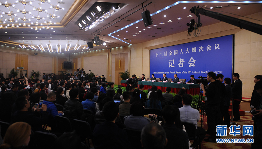 ?????十二屆全國人大四次會議新聞中心于3月12日(星期六)14時(shí)30分在梅地亞中心多功能廳舉行記者會,邀請國務(wù)院國有資產(chǎn)監(jiān)督管理委員會主任肖亞慶、副主任張喜武、副主任黃丹華和副秘書長、新聞發(fā)言人彭華崗就“國企改革”的相關(guān)問題回答中外記者的提問。圖為記者會現(xiàn)場。新華網(wǎng)/中國政府網(wǎng)? 陳杰? 攝