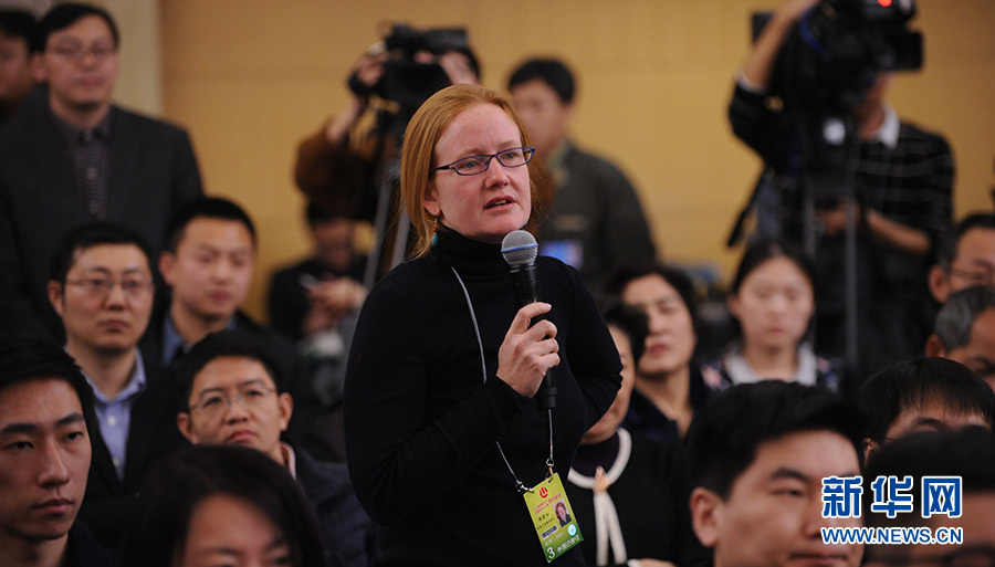 ?????十二屆全國人大四次會(huì)議新聞中心于3月12日(星期六)14時(shí)30分在梅地亞中心多功能廳舉行記者會(huì),邀請國務(wù)院國有資產(chǎn)監(jiān)督管理委員會(huì)主任肖亞慶、副主任張喜武、副主任黃丹華和副秘書長、新聞發(fā)言人彭華崗就“國企改革”的相關(guān)問題回答中外記者的提問。圖為金融時(shí)報(bào)記者提問。新華網(wǎng)/中國政府網(wǎng) 陳杰 攝