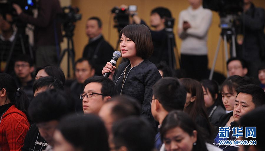 ?????十二屆全國(guó)人大四次會(huì)議新聞中心于3月12日(星期六)14時(shí)30分在梅地亞中心多功能廳舉行記者會(huì),邀請(qǐng)國(guó)務(wù)院國(guó)有資產(chǎn)監(jiān)督管理委員會(huì)主任肖亞慶、副主任張喜武、副主任黃丹華和副秘書(shū)長(zhǎng)、新聞發(fā)言人彭華崗就“國(guó)企改革”的相關(guān)問(wèn)題回答中外記者的提問(wèn)。圖為經(jīng)濟(jì)參考報(bào)記者提問(wèn)。新華網(wǎng)/中國(guó)政府網(wǎng) 陳杰 攝