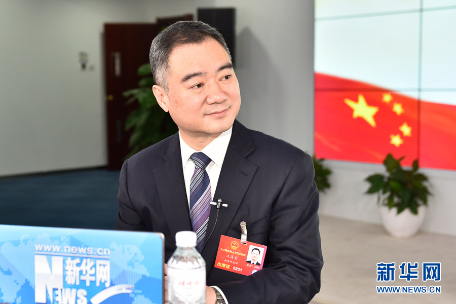 3月12日,全國(guó)人大代表,運(yùn)城市市長(zhǎng)王清憲做客新華網(wǎng)2016全國(guó)兩會(huì)特別訪談,與新華網(wǎng)網(wǎng)友在線交流。圖為王清憲在訪談現(xiàn)場(chǎng)。新華網(wǎng) 付宇鵬 攝