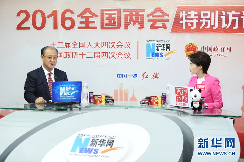 2016年3月13日,全國(guó)政協(xié)委員,中國(guó)中醫(yī)科學(xué)院廣安門醫(yī)院院長(zhǎng)王階做客新華網(wǎng)兩會(huì)訪談直播間。圖為王階在訪談現(xiàn)場(chǎng)。新華網(wǎng) 盧志佳 攝