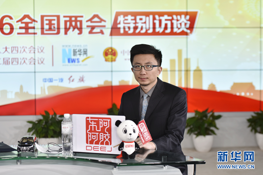 ????2016年3月13日,全國(guó)人大代表、海南省三沙市委書記、市政府市長(zhǎng)肖杰做客新華網(wǎng)兩會(huì)訪談直播間。圖為主持人孫博。新華網(wǎng) 郭小天 攝