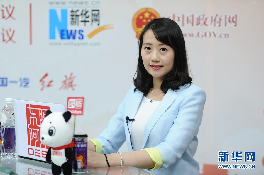 2016年3月14日,全國人大代表、湖南省益陽市委書記胡忠雄做客新華網(wǎng)兩會(huì)訪談直播間。圖為新華網(wǎng)主持人李由。新華網(wǎng) 盧志佳 攝