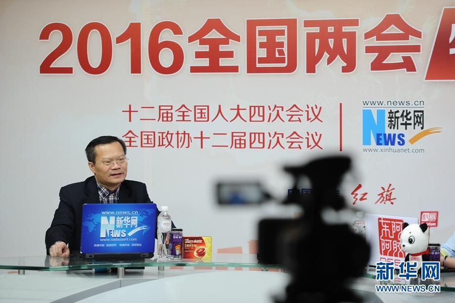 2016年3月14日,全國人大代表、湖南省益陽市委書記胡忠雄做客新華網(wǎng)兩會訪談直播間。圖為訪談現(xiàn)場。新華網(wǎng) 盧志佳 攝