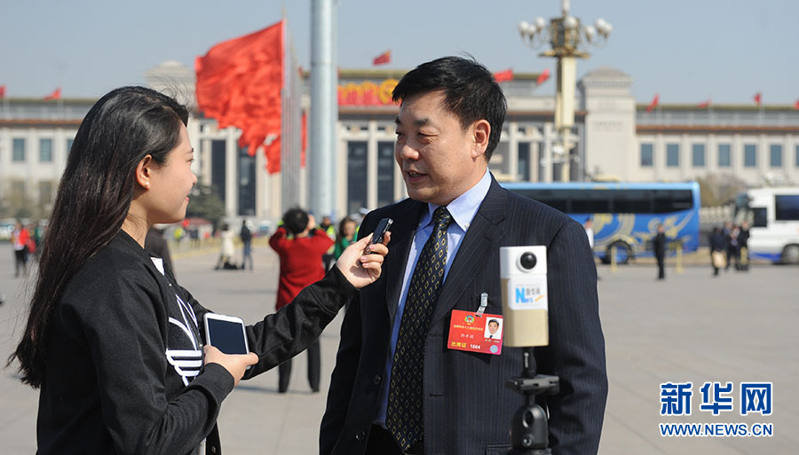 ?????3月14日,全國(guó)政協(xié)十二屆四次會(huì)議在北京人民大會(huì)堂舉行閉幕會(huì)。這是全國(guó)政協(xié)委員在人民大會(huì)堂外接受記者采訪(fǎng)。新華網(wǎng)/中國(guó)政府網(wǎng)??陳杰 攝