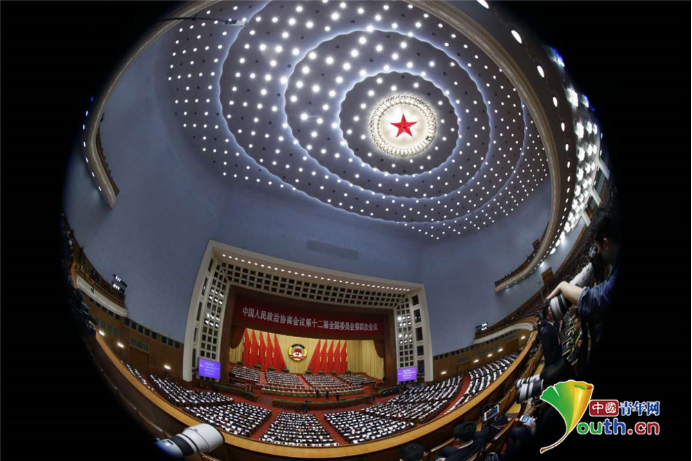 中國人民政治協(xié)商會議第十二屆全國委員會第四次會議閉幕式在人民大會堂舉行。中國青年網(wǎng)記者 張炎良攝