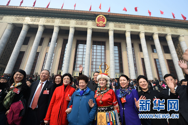 3月16日,第十二屆全國(guó)人民代表大會(huì)第四次會(huì)議閉幕會(huì)后,代表走出人民大會(huì)堂。?新華社記者 潘昱龍 攝