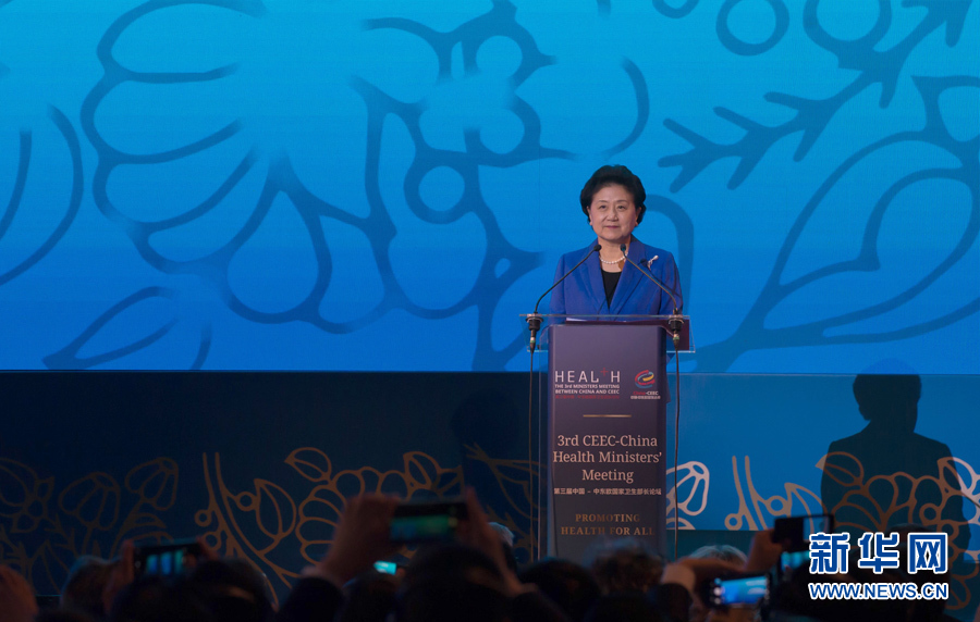 6月19日,第三屆中國-中東歐國家衛(wèi)生部長論壇在匈牙利布達佩斯舉行,中國國務(wù)院副總理劉延東出席開幕式并致辭。新華社發(fā)(弗爾季·奧蒂洛攝)