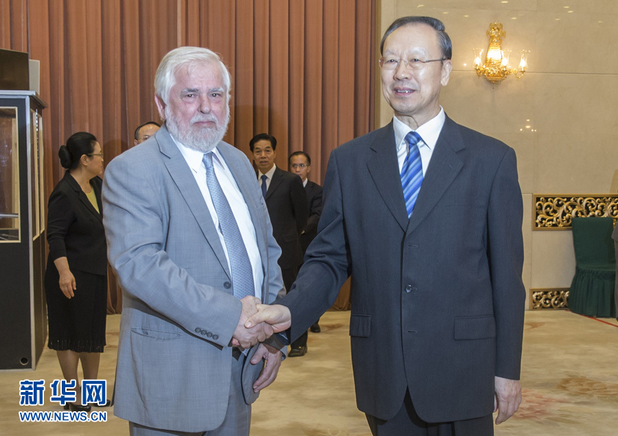 6月28日,中共中央書記處書記、全國(guó)政協(xié)副主席、中國(guó)經(jīng)濟(jì)社會(huì)理事會(huì)主席杜青林在北京會(huì)見歐盟經(jīng)濟(jì)社會(huì)委員會(huì)主席達(dá)西斯。 新華社記者崔新鈺 攝