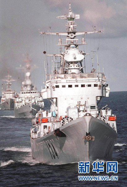 中國海軍導(dǎo)彈驅(qū)逐艦、護(hù)衛(wèi)艦編隊巡邏在祖國的萬里海疆(資料照片)。新華社發(fā)