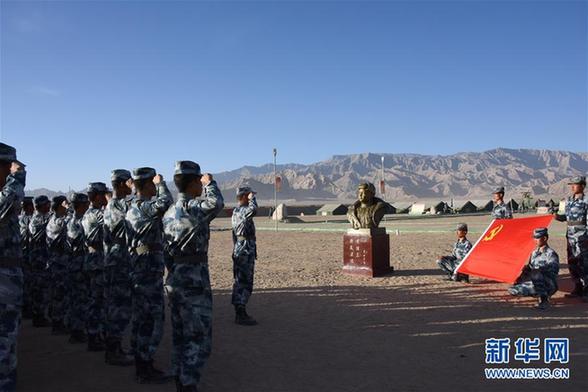 黃繼光生前所在連官兵赴高原參加實戰(zhàn)化訓練,連指導員余海龍帶領官兵莊嚴宣誓(2016年6月17日攝)。新華社發(fā)(袁文濤 攝)